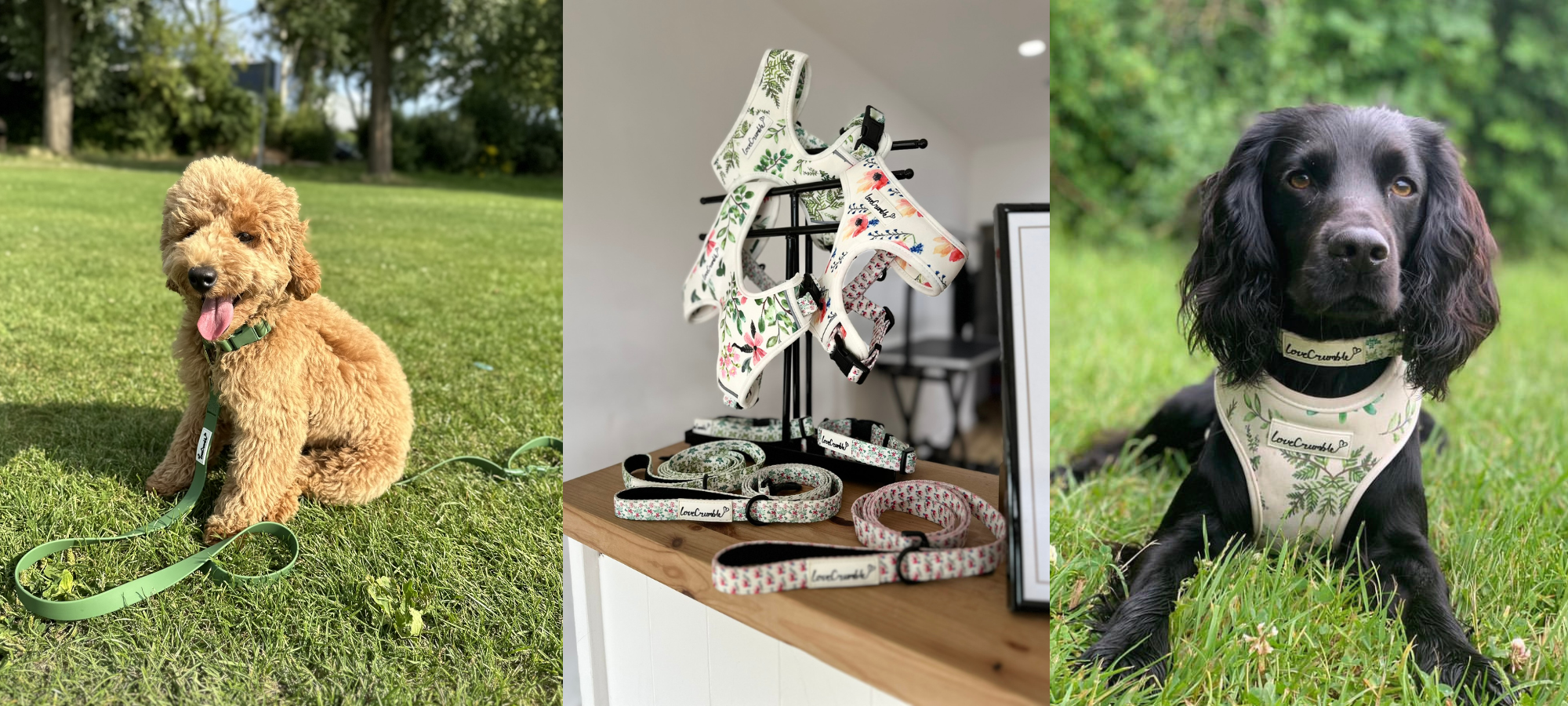 James PThe adjustable harness makes it easy to get the perfect fit for our Cocapoo. The collar and lead are just as impressive. The floral pattern is unique and reallystands out. Plus, it’s all so well made. LoveCrumble has definitely won usover!
